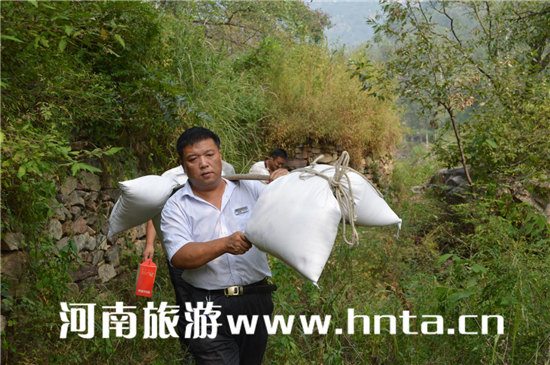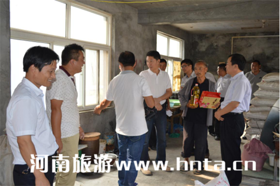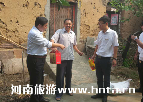 在當(dāng)?shù)卮甯刹颗阃,分別看望了松樹坪、回龍、和寺庵和土樓四個村23戶五保戶,給他們送去面粉、食油和月餅,表達(dá)了新鄉(xiāng)南太行旅游有限公司和八里溝園區(qū)對他們的問候和節(jié)日祝福。