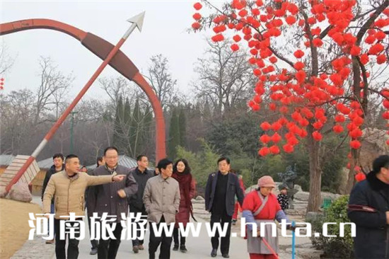 1月11日下午,中共開封市委常委、宣傳部部長王載飛等一行蒞臨萬歲山參觀指導,察看了萬歲山春節(jié)大廟會最新籌備情況。景區(qū)董事長助理兼萬歲山國際馬戲大劇院總經(jīng)理姜賓、總經(jīng)理宋濤參與接待工作。