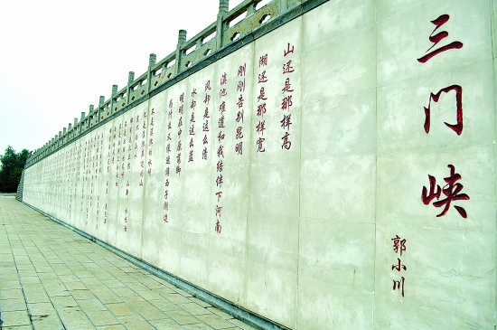 三河廣場(chǎng)墻壁上刻著郭小川的《三門峽》