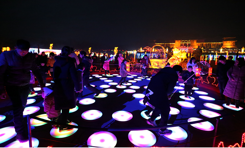 焦作影視城2019“年之味”新春傳統(tǒng)燈會璀璨開幕,傳統(tǒng)彩燈技藝+現(xiàn)代化高科技+互動體驗(yàn),聲、光、電、影與古老建筑魅力完美融合,詮釋了燈會的絢麗輝煌。特別是文化廣場,璀璨奪目的燈組倒映在水中,水中有燈,燈中有水,人在燈中走,燈在水中游,如夢如幻,恍若仙境。各式各樣的燈光長廊、美輪美奐的主題燈組以及摩天輪、發(fā)光秋千、南瓜車、水晶車、戀愛亭等互動性燈組,都成為游客們拍照的選擇焦點(diǎn)。不僅僅是賞燈,盛世新春音樂盛典、小丑大輪車、新春音樂會、奇幻之旅3D幻影秀等文旅游體驗(yàn)也是豐富多彩。特別是今年新引進(jìn)的娛樂項(xiàng)目集聚超高的人氣。動感許愿樹,綻放出絢燦光彩,烘托出濃濃的喜慶祥和的新春氣氛,凡路過的游客們紛紛許下美好愿望。激情喊泉處,瞬間爆發(fā)的水流聲、吶喊聲與游客們的喝彩聲,周圍數(shù)百米外都能看見、聽見,為景區(qū)增添了歡樂的人氣氛圍,吸引游客爭相圍觀參入。激光3D水幕電影驚艷全場,在燈光、水幕、音樂相互交織下,展現(xiàn)出一個(gè)美輪美奐的世界,虛無縹緲和夢幻的感覺,震撼的視聽盛宴,引發(fā)無數(shù)游客們的驚呼聲。