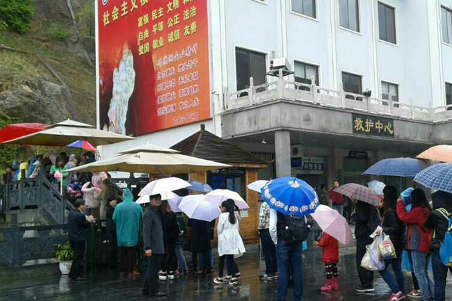 上午9:30開始,打著花傘、披著各色雨衣的人們涌入景區(qū),一時間景區(qū)的中心廣場、票務(wù)中心、游客服務(wù)中心、溶洞進(jìn)口等處就如是“花”的海洋,游客暴滿。由于高速免費(fèi),雞冠洞景區(qū)準(zhǔn)備充分,加之景區(qū)規(guī)范的管理,優(yōu)質(zhì)的服務(wù),景區(qū)內(nèi)的游覽秩序井然,接待安全有序,呈現(xiàn)一派祥和的旅游景象。