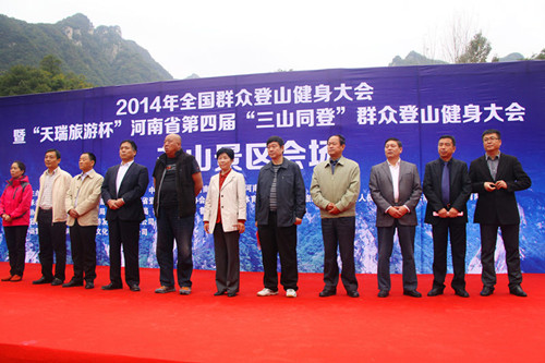 這次全民健身活動(dòng)主會(huì)場(chǎng)設(shè)在堯山,備受各界矚目。在大會(huì)開(kāi)幕之前,預(yù)定團(tuán)隊(duì)的傳真電話(huà)就響不停,活動(dòng)當(dāng)日一大早,山門(mén)就聚集了不少參加登山大會(huì)的人群。堯山風(fēng)景秀美,歷史文化積淀豐厚,山勢(shì)奇?zhèn)ィ情_(kāi)展群眾性登山活動(dòng)的難得佳地。堯山正處于紅葉節(jié)期間,漫山紅遍,層林盡染,堯山有“天然氧吧”美譽(yù),登山健身正當(dāng)時(shí),欣賞美景兩相宜。