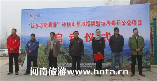 11月6日,由新鄉(xiāng)文明辦、新鄉(xiāng)志愿者聯(lián)合會(huì)、輝縣文明辦、輝縣志愿者協(xié)會(huì)組織的“志愿服務(wù)”轎頂山基地授牌暨“垃圾銀行公益項(xiàng)目”啟動(dòng)儀式在轎頂山舉行。