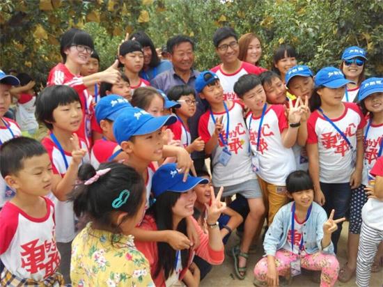 孩子們在亞洲第一高山果園里合影