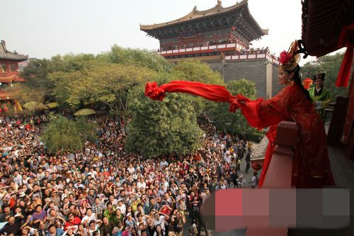 清明上河園經(jīng)典節(jié)目《王員外招親》。記者趙文建攝