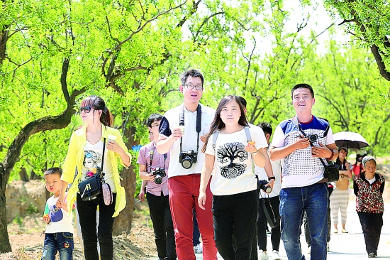 5月23日,來自“燕子山號”專列的千余名游客在靈寶市大王鎮(zhèn)后地村明清古棗林里品棗茶、嘗大杏,休閑觀光。