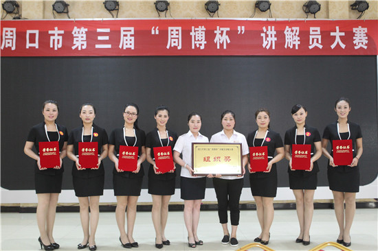 6月16日上午,第三屆“周博杯”文博系統(tǒng)講解員講解大賽在周口市大澤源酒店賓館隆重舉行,縣太昊陵管理處七名講解員參加了本屆大賽。通過緊張激烈的角逐,最終該處講解員崔鵬獲得第二名的好成績,榮獲二等獎;楊文靜、劉晨茜并列第四名,王珂珂獲得第五名,榮獲三等獎;張園園、劉曉婷、陳翠翠榮獲優(yōu)秀獎;同時淮陽縣太昊陵管理處榮獲團體組織獎。