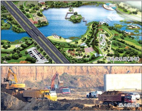 日前,在洛陽(yáng)瀍河中游瀍源生態(tài)旅游景觀水系公園項(xiàng)目工地上,大型機(jī)械設(shè)備正在河道內(nèi)加緊施工。