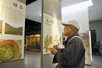 圖為一位老觀眾在“茶韻天香”展廳觀展
