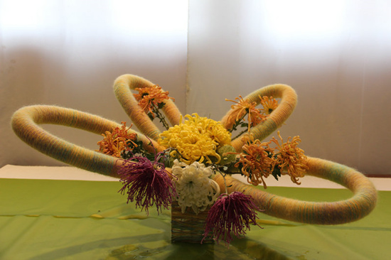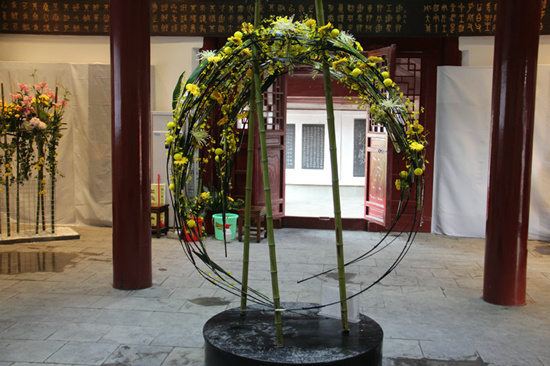 菊會期間的菊花是最美的,美的另人稱奇,金黃花朵層層疊疊宛如小山丘的大立菊;如瀑布般的懸崖菊,一枝雙花的并蒂菊;花色青蒼凝重的墨菊,都會讓人耳目一新,嘆為觀止。于此同時,中國翰園特推出的“菊花插花展”也是別出心裁。本屆插畫展有傳統(tǒng)插花藝術展;現代花藝展;菊花三樂章;果蔬插花展和菊花壁畫插花展,分別設在中國翰園南大殿、中心閣和北大殿五個展示廳,展覽規(guī)?涨,展覽形式多樣。各種花材、花器和展示材料通過插花大師的一番造型修飾之后給人以無限的遐想,更體現出了菊花的風韻和美好,從不同角度欣賞到的菊花的風采定會使廣大游客有眼前一亮的感覺。插花藝術是一種視覺藝術,以其絢麗奪目、清幽淡雅、古樸凝重,給人以美的享受。