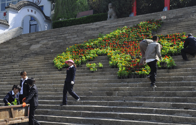 據(jù)了解,園林工程部為迎接五一假期,讓專業(yè)人員提前啟動花卉繁育流程,精心調(diào)控大棚溫濕度,合理安排種植時間,現(xiàn)已成功培育出20多個品種10000盆鮮花,現(xiàn)正加班加點(diǎn)對景區(qū)牌樓、迎賓廣場、主干道、休閑步道、游客休憩點(diǎn)、停車場等地?cái)[放。