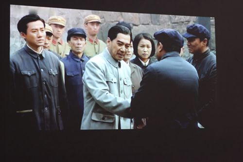 隨著打在墻上的投影儀字幕越來(lái)越清晰,畫面里的周總理形象越來(lái)越鮮明,影片中出現(xiàn)了這樣一個(gè)鏡頭,下車伊始周總理就能準(zhǔn)確的叫出該村主任的名字。“哦,這就是周總理!”下面紛紛發(fā)出這樣的議論聲。伴隨著一組組總理深入群眾與群眾一起集體用餐、俯下身子與群眾進(jìn)行交談、放下架子與群眾一起勞動(dòng)等鏡頭的轉(zhuǎn)換,大家被周總理的實(shí)干精神、艱苦樸素的作風(fēng)以及時(shí)時(shí)刻刻為群眾著想,與群眾同呼吸、共命運(yùn)、心連心的公仆精神深深感動(dòng)。“啊,這就是我們的周總理!”又是一陣陣議論聲。簡(jiǎn)陋的小皮凳子,模糊不清的小畫面,有些雜音的小音箱,卻擋不住周總理在我們心里留下的投影……
