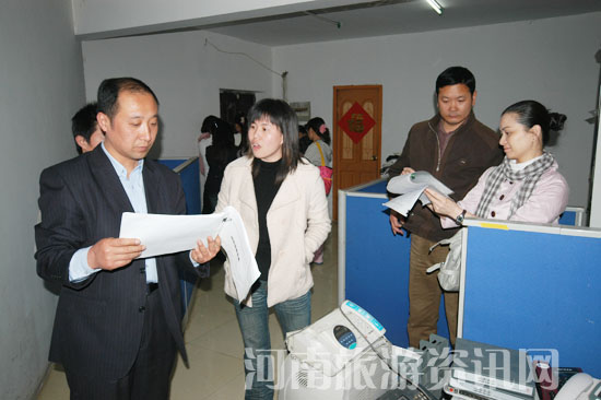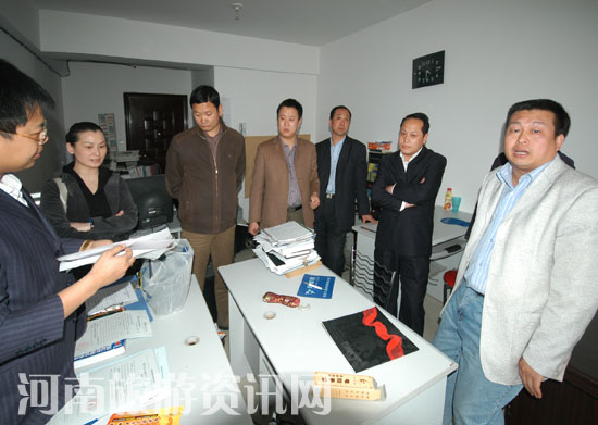 26日下午十六時,執(zhí)法人員又趕到位于鄭州市金水路新鑫花園一棟居民樓內(nèi)的鄭州時+利廣告文化傳播有限公司(《中原旅游信息》編輯部)。在這里執(zhí)法人員發(fā)現(xiàn),該公司正在積極籌辦2008中國國內(nèi)旅游交易會聯(lián)誼會。其邀請函上注明:“指導(dǎo)單位:河南省旅游協(xié)會……”。而在稍后的檢查中,執(zhí)法人員發(fā)現(xiàn),該公司的“2008國內(nèi)旅交會”業(yè)務(wù)進展登記本上記錄著,該公司早在2008年1月就開始了參會邀請和業(yè)務(wù)招攬,根據(jù)該記錄,每天都有幾筆生意可以“成交”,少則幾百、多則萬元,而其登記的交易總金額估計已超過五十萬元。同時,該公司也未能出具任何證明材料及營業(yè)證照!在執(zhí)法過程中,該公司一名負責(zé)經(jīng)理(上圖中)態(tài)度蠻橫,多次阻撓執(zhí)法。執(zhí)法人員排除干擾,依法對該公司辦公物品進行先行登記保存,并要求其三日內(nèi)到省旅游局說明情況。