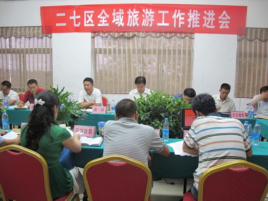 8月28日下午,二七區(qū)召開全域旅游工作推進會,二七區(qū)副區(qū)長袁斌及二七區(qū)文化旅游局、農(nóng)委、交通局、櫻桃溝管委會等10家單位主要領(lǐng)導(dǎo)參加了會議。