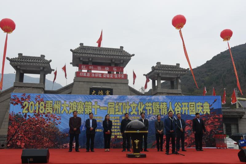 10月20日,2018禹州大鴻寨第十一屆紅葉文化節(jié)暨夢(mèng)幻情人谷開園典禮隆重開幕,許昌市旅游局副局長(zhǎng)康松朝、禹州市委常委宣傳部部長(zhǎng)李益民、禹州市人民政府副市長(zhǎng)牛艷偉等領(lǐng)導(dǎo)和嘉賓出席開幕式。