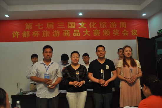 在本次旅游商品大賽暨展銷會(huì)期間鄢陵縣獲得第七屆三國(guó)旅游周旅游商品展銷會(huì)優(yōu)秀組織獎(jiǎng),參賽的河南上林公司選送玫瑰精油精品裝獲得金獎(jiǎng);只樂(lè)喜相逢剪紙工作室選送的清明上河圖獲得銀獎(jiǎng);許昌金伯利箱包有限公司選送的精品商務(wù)男包、河南漢魏風(fēng)酒業(yè)選送的相府宴酒獲得銅獎(jiǎng)。