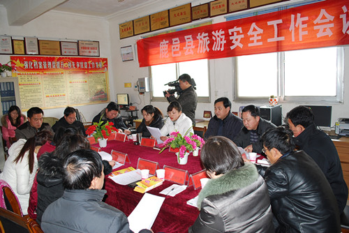 為確保“兩會(huì)”和“雙節(jié)”期間旅游安全,按照縣委、縣政府統(tǒng)一要求,1月18日下午3點(diǎn),鹿邑縣旅游安全生產(chǎn)工作會(huì)議在鹿邑縣旅游局辦公室召開(kāi)。參加會(huì)議的有鹿邑縣涉旅企業(yè)安全負(fù)責(zé)人和旅游局全體工作人員,同時(shí),會(huì)議還邀請(qǐng)了安監(jiān)局的辦公室副主任張寧參加。鹿邑電視臺(tái)記者對(duì)會(huì)議進(jìn)行了現(xiàn)場(chǎng)報(bào)道。