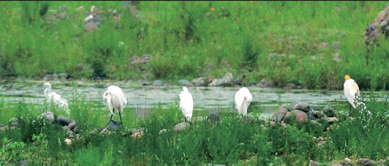 如今,汝河濕地已成為一道亮麗的風(fēng)景線。河水清清,綠草青青,目前已發(fā)現(xiàn)有黑鸛、白鷺、池鷺等數(shù)十種鳥兒在這里安家。在汝河水面上劃著小船,欣賞著小城美景,別有一番情趣。