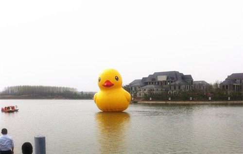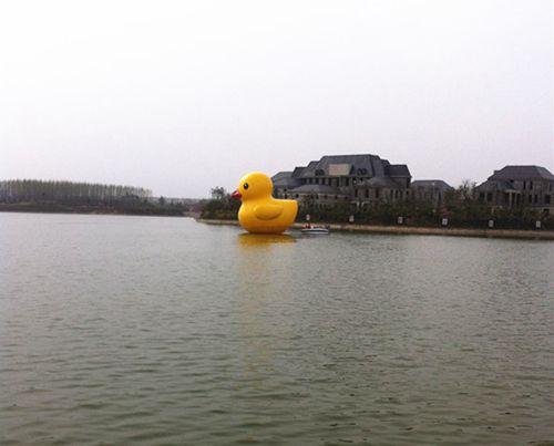 相關(guān)鏈接:大黃鴨(英文名:Rubber Duck,大陸網(wǎng)友稱之為香港小黃鴨,香港媒體稱之為巨鴨),是由荷蘭藝術(shù)家弗洛倫泰因•霍夫曼(Florentijn Hofman)以經(jīng)典浴盆黃鴨仔為造型,創(chuàng)作的巨型橡皮鴨藝術(shù)品,先后制作有多款,其中一只世界上體積最大的橡皮鴨,尺寸為26×20×32米。自2007年第一只“大黃鴨”誕生開始,霍夫曼帶著他的作品從荷蘭的阿姆斯特丹出發(fā),截止2013年6月,先后造訪了德國(guó)紐倫堡、巴西圣保羅、日本大阪、英國(guó)倫敦、澳大利亞悉尼等11個(gè)國(guó)家的14個(gè)城市,大黃鴨所到之處都受到了很大的關(guān)注,也為當(dāng)?shù)氐穆糜渭傲闶蹣I(yè)帶來(lái)了極大的商業(yè)價(jià)值。