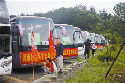 700人的旅游大巴開進(jìn)商城縣
