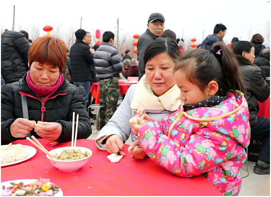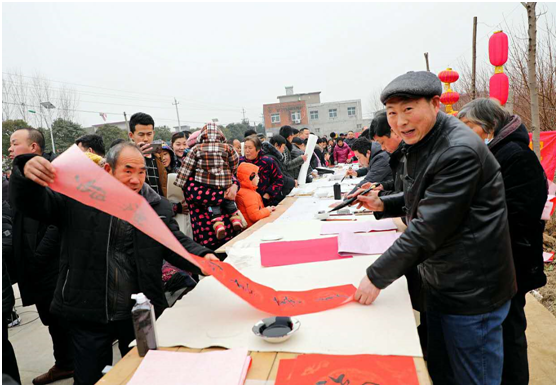 當(dāng)日,村里人山人海,鑼鼓喧天,來(lái)自四面八方的鄉(xiāng)鄰匯聚在一起,歡歡喜喜過(guò)小年。義寫春聯(lián)、名家作畫等文化活動(dòng)讓人目不暇接。戲曲名家名段、漢舞表演等節(jié)目贏得村民們的陣陣喝彩。此次活動(dòng)的主題是畫家村千餃宴,千人同包同吃千餃宴,在喜慶祥和的氣氛中歡度小年。