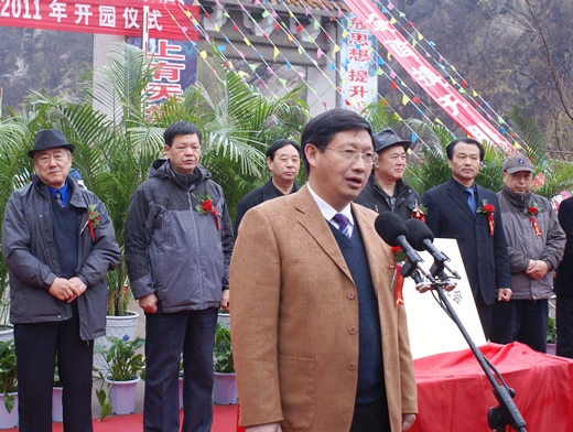 縣委常委、宣傳部部長朱金斗宣布天池山2011開園及登山賽開始