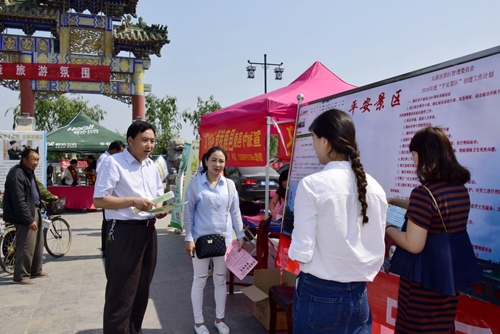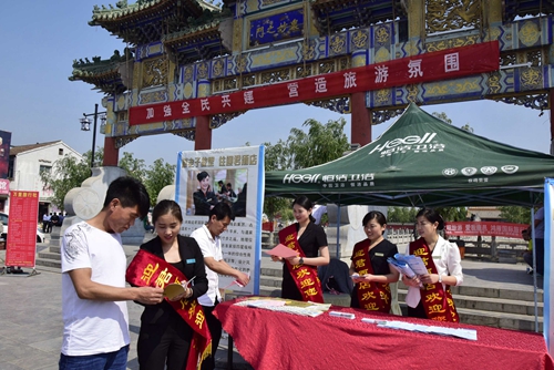 本次“中國(guó)旅游日”活動(dòng)的主要有:一是,文明旅游宣傳活動(dòng),F(xiàn)場(chǎng)向游客、市民發(fā)放了《鹿邑縣文明旅游倡議書》200多份。二是,旅游行業(yè)誠(chéng)信經(jīng)營(yíng)、文明服務(wù)宣傳活動(dòng)。發(fā)放了省旅游局《關(guān)于在全省旅游行業(yè)開展誠(chéng)信經(jīng)營(yíng)、文明服務(wù)、爭(zhēng)先創(chuàng)優(yōu)活動(dòng)的倡議書》。三是,萬(wàn)人簽名活動(dòng)。組織了游客、市民及旅游從業(yè)人員在“倡導(dǎo)文明旅游、平安旅游、誠(chéng)信經(jīng)營(yíng)、優(yōu)質(zhì)服務(wù)、旅游扶貧,促和平、促發(fā)展”條幅上簽名。四是,旅游惠民系列活動(dòng)。組織旅游企業(yè)在活動(dòng)現(xiàn)場(chǎng)開展了旅游咨詢服務(wù)、產(chǎn)品宣傳推廣、旅游大優(yōu)惠等活動(dòng),發(fā)放了各類宣傳資料300多份。當(dāng)日起至5月31日,國(guó)家AAAA級(jí)景區(qū)太清宮景區(qū)、明道宮景區(qū),除繼續(xù)原有各項(xiàng)優(yōu)惠措施外,實(shí)行門票半價(jià)的惠民措施;國(guó)家AA級(jí)武平成景區(qū)繼續(xù)實(shí)行免門票措施。