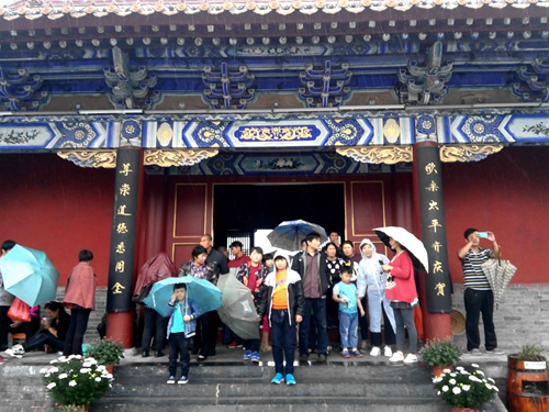 今天國慶,節(jié)恰逢農(nóng)歷初一,綿綿細(xì)雨難擋人們來到老子故里參觀、朝拜的熱情,反而增加了絲絲情趣。鹿邑縣太清宮景區(qū)、明道宮景區(qū)提前做好了各項(xiàng)準(zhǔn)備工作,景區(qū)增加了大量盆花,到處國旗飄飄,彩燈裝飾一新,工作人員服務(wù)熱情,廣受好評(píng)。全天接待量4.1萬人,同比增長(zhǎng)5%;門票收入50萬,同比增長(zhǎng)2%。游客以自駕游、休閑游、學(xué)生游為主,其中,60歲以上免票的老年人所占比重較大。周邊及外地自駕游多,如洛陽、河北保定等地好幾車朋友相約自駕來鹿邑游玩。全天無安全責(zé)任事故,無旅游投訴。