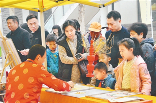 作為“第五屆河南省博物館文化產(chǎn)品創(chuàng)意設(shè)計(jì)大賽”和“惠濟(jì)區(qū)非遺項(xiàng)目系列展演活動(dòng)”之一,市集吸引了省內(nèi)眾多非物質(zhì)文化遺產(chǎn)項(xiàng)目以及民族民間民俗藝術(shù)前來參加演示;轁(jì)區(qū)組織省、市、區(qū)級(jí)非物質(zhì)文化遺產(chǎn)和民俗項(xiàng)目30多項(xiàng)參演,其中黃河澄泥硯、烙畫、蛋雕、皮雕、面塑、糖畫、吹糖人等非遺和民俗項(xiàng)目尤其引人注目。另外,本次文化創(chuàng)意市集還特別邀請(qǐng)了泥猴張、宋室風(fēng)箏、木版年畫、北宋官窯等20余項(xiàng)省內(nèi)非遺項(xiàng)目前來參演,文化市集上吹糖人、泥猴張、泥人劉、糖畫等手作藝人的攤位前圍滿了前來觀賞的市民。