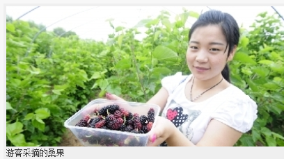 “‘體驗(yàn)田園生活,品味歷史文化’是本屆桑果采摘節(jié)的活動(dòng)主題。今年我們引進(jìn)了多個(gè)桑果優(yōu)良品種,到此一游的市民們會(huì)不虛此行。我們已開發(fā)出桑果醋、桑果酒、桑果干、桑葉茶等桑果深加工產(chǎn)品。下一步,我們將針對(duì)桑果保健功效開發(fā)更多的保健產(chǎn)品。”衛(wèi)志鵬告訴記者,舉辦桑果采摘節(jié)旨在將農(nóng)業(yè)和旅游相融合,打造創(chuàng)意旅游產(chǎn)品,使更多的市民和游客能夠盡情體驗(yàn)田園生活,感受田園風(fēng)光。今后他們每年都會(huì)定期舉辦桑果采摘節(jié)。