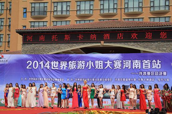 2014年4月5日,2014世界旅游小姐大賽河南許昌賽區(qū)在鄢陵花都溫泉小鎮(zhèn)開賽,四十位參賽佳麗通過活力裝、比基尼、禮服展示等環(huán)節(jié)的比拼爭奪決賽資格。選手們婀娜的身姿、甜美的笑容以及精湛的才藝表演,為現(xiàn)場觀眾帶來了一次美妙的視覺享受。
