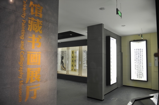 將軍廳向東即是館藏書畫廳。襄城縣文化底蘊深厚,歷代文人多與襄城有深厚情結(jié),留下許多詩文和墨跡。而當(dāng)今的諸多文化藝術(shù)界名人也與襄城結(jié)有深厚情感。特別是毛澤東主席視察襄城后,長城內(nèi)外、大江南北久負(fù)盛名的的書畫家,也紛至沓來潑墨揮毫,惠贈墨寶、丹青,表達(dá)對一代偉人的無限懷念之情,表達(dá)對襄城大地的深厚感情。這些名人書法或篆或隸、或行或草,或縱橫捭闔,或跌宕起伏,或氣勢浩大,或蒼勁枯渴,無不高絕飄逸;他們的國畫作品或工筆,或?qū)懸,或花鳥,或山水人物,色彩明快宜人,構(gòu)圖獨具匠心,均屬上乘之作,他們以藝術(shù)的手法,再現(xiàn)毛主席詩詞的意境,謳歌一代偉人博大的胸懷,同時也抒發(fā)了他們對偉大領(lǐng)袖的無限懷念和對襄城大地的無限贊美。