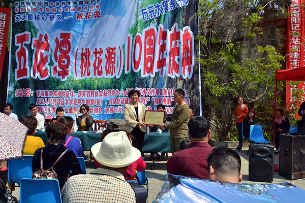 4月25,桃花源景區(qū)一片沸騰,這里正在舉行 “五龍?zhí)叮ㄌ一ㄔ矗┚皡^(qū)十周年慶典”活動(dòng),內(nèi)鄉(xiāng)縣各個(gè)景區(qū)、南陽(yáng)多家旅行社以及近500名游客共同參加了慶典活動(dòng).