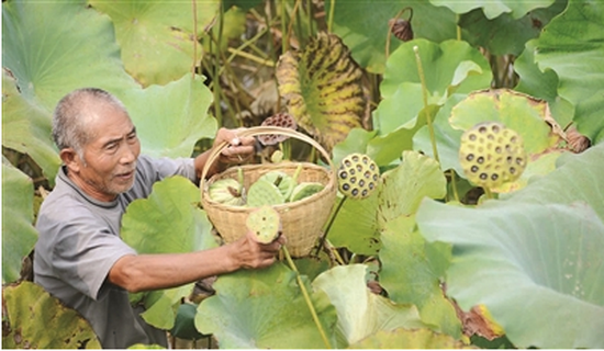 眼下,正值蓮蓬采摘時節(jié)。在孟津縣會盟鎮(zhèn)李莊村境內(nèi)的黃河灘區(qū)里,農(nóng)民們正在池塘內(nèi)忙碌著采摘新鮮蓮蓬、收獲蓮子。該鎮(zhèn)已有10多年的種蓮史,擁有荷塘萬余畝。夏天,吸引著絡(luò)繹不絕前來賞荷花的游人。秋天,采蓮蓬賣蓮子又成為灘區(qū)農(nóng)民增收的新途徑。