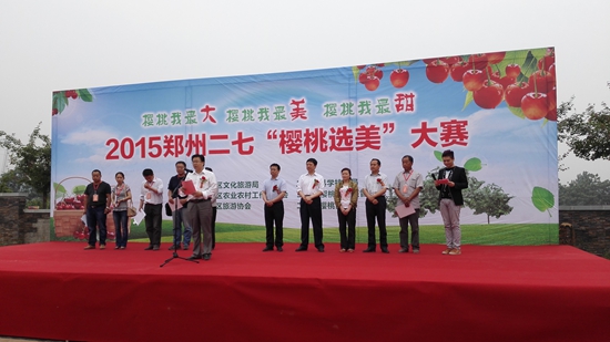 5月26日上午,由二七區(qū)文化旅游局、二七區(qū)科技局、二七區(qū)農(nóng)委、二七區(qū)櫻桃溝景區(qū)管委會主辦,二七區(qū)旅游協(xié)會、二七區(qū)櫻桃協(xié)會、河南石雨花文化傳播承辦的2015鄭州二七“櫻桃選美”大賽在櫻桃溝景區(qū)舉辦,區(qū)委宣傳部部長黃衛(wèi)東、區(qū)人大副主任周國建、區(qū)文化旅游局局長肖鋒、區(qū)科技局局長田培紅、區(qū)農(nóng)委黨委副書記杜雙晶、櫻桃溝景區(qū)管委會黨工委書記王峰、櫻桃溝景區(qū)管委會主任齊新華、區(qū)文化旅游局常務(wù)副局長王進(jìn)喜參加了此次活動;顒蝇F(xiàn)場共有57家大櫻桃種植戶參加了比賽。比賽分“櫻桃我最大”、“櫻桃我最甜”、“櫻桃我最美”三個單項進(jìn)行,經(jīng)過激烈角逐,種植戶周彥祥、王留獻(xiàn)、郭瑞軍分獲“櫻桃我最大”一、二、三等獎;種植戶張新領(lǐng)、李書欣、郭瑞軍分獲“櫻桃我最甜”一、二、三等獎;種植戶郭瑞軍、李二娃、周彥祥分獲“櫻桃我最美”一、二、三等獎。另有15名種植戶榮獲優(yōu)秀獎。