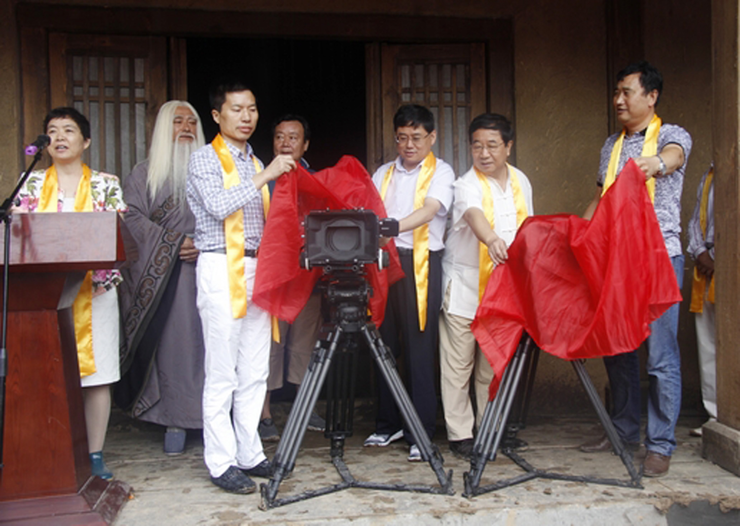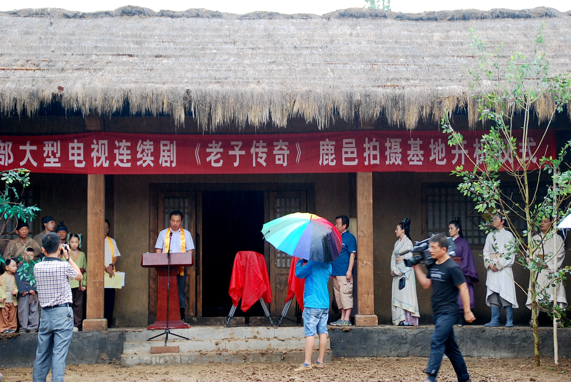 河南省人大常委會(huì)辦公廳副主任田永紅宣布電視劇《老子傳奇》正式揭鏡,縣委書記陳志偉等領(lǐng)導(dǎo)和嘉賓委電視劇揭鏡。朱良才縣長(zhǎng)在致辭中代表縣四個(gè)班子領(lǐng)導(dǎo)和全縣百萬(wàn)人民對(duì)《老子傳奇》的開拍表示祝賀,對(duì)辛勤工作的劇組人員和前來祝賀的各位嘉賓表示歡迎和感謝,他希望劇組主創(chuàng)人員把電視劇拍成弘揚(yáng)中華優(yōu)秀傳統(tǒng)文化、傳播正能量的時(shí)代經(jīng)典之作,各部門將全力以赴配合做好各項(xiàng)服務(wù)工作。導(dǎo)演陳衛(wèi)國(guó)、老子的扮演者兼副導(dǎo)演及兩位演員代表先后發(fā)言,劇組人員還自發(fā)現(xiàn)場(chǎng)為鹿邑困難群眾抗旱工作捐款,受到了大家的一致稱贊。開機(jī)儀式由編劇王學(xué)新主持,他還帶領(lǐng)所有人員一起誦讀了《道德經(jīng)》部分篇章,再度感悟老子文化的深厚魅力。儀式結(jié)束后,嘉賓們又先后參觀了太清宮、明道宮、老子文化廣場(chǎng)等景區(qū)、景點(diǎn)。