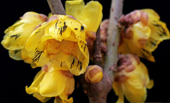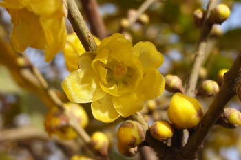 金鐘蠟梅:花大且為黃色,形似金鐘,重瓣,香氣亦濃。