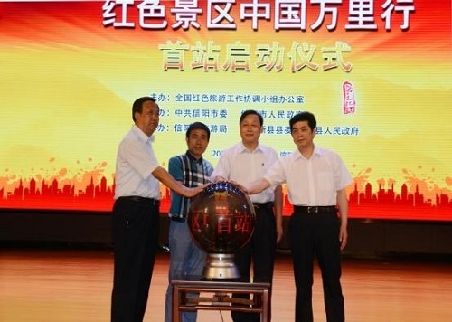 6月14日上午,由全國紅色旅游工作協(xié)調(diào)小組辦公室主辦,信陽市委、市政府承辦,信陽市旅游局和新縣縣委縣政府共同協(xié)辦的“紅色景區(qū)中國萬里行”京外首站啟動儀式在新縣大別山干部學(xué)院隆重舉行。出席啟動儀式的有:全國紅辦副主任胡呈軍、信陽市副市長謝天學(xué)、全國紅色景區(qū)數(shù)據(jù)信息采集辦公室主任顧輝等。參加啟動儀式的有:信陽市師河區(qū)、羅山縣、光山縣、商城縣等縣區(qū)政府分管領(lǐng)導(dǎo)、旅游局長,信陽市部分紅色旅游景區(qū)負(fù)責(zé)人及河南省、信陽市新聞媒體記者。啟動儀式由信陽市旅游局局長童光亮主持。