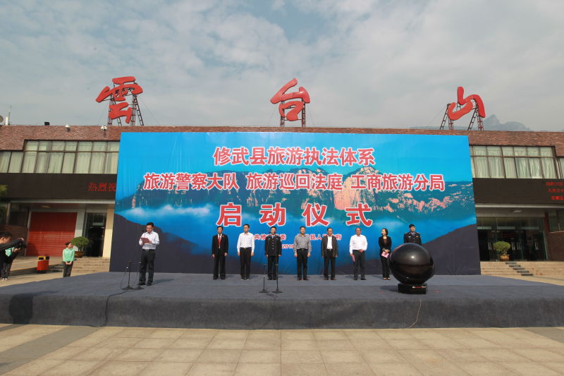 9月30日,修武縣包含旅游警察大隊、旅游法庭、工商旅游分局在內的旅游綜合執(zhí)法體系正式啟動,河南省旅游局監(jiān)督管理處處長張建州,焦作市旅游局局長趙衛(wèi)星,焦作市公安局黨委委員、副局長周延印等領導出席啟動儀式,這標志著修武縣旅游綜合執(zhí)法體制改革向前邁出了重要的一步。