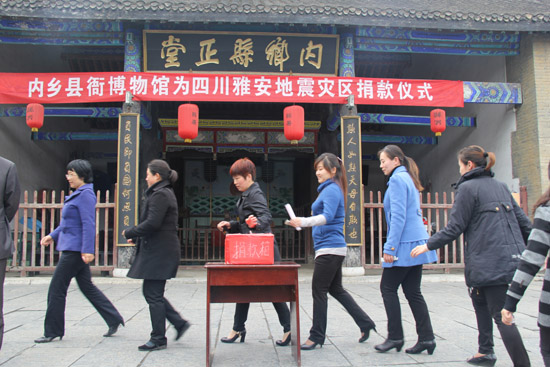 縣衙景區(qū)向四川雅安地震災(zāi)區(qū)捐款獻(xiàn)愛心