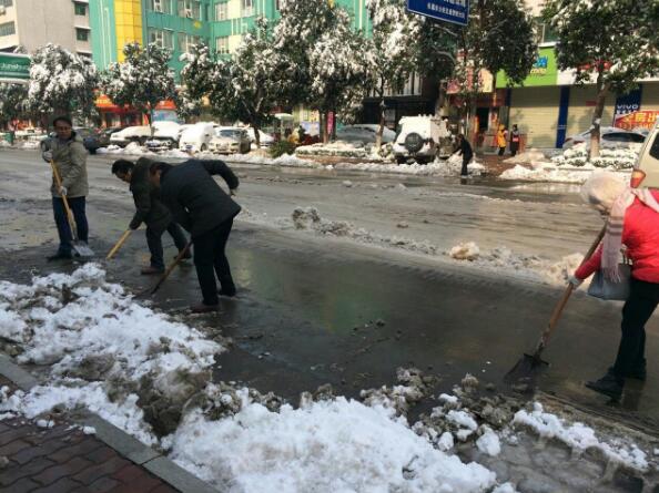 長葛市旅游局機關干部走上街頭清掃積雪