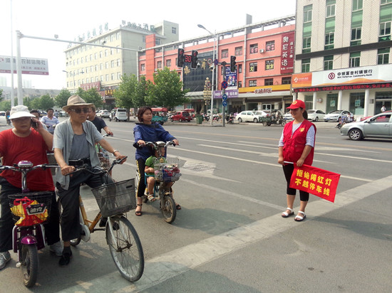 執(zhí)勤活動中,我單位志愿者發(fā)放了“交通安全 文明出行”宣傳單,通過勸阻橫穿馬路、非機動車走機動車道等不文明行為,并對違反交通規(guī)則的行人進行勸阻,糾正其不文明行為,教育引導市民遵守交通法規(guī),文明行路、文明行車。為過往行人做指引,保證行人都能安全過馬路,為廣大市民營造出一個平安的出行環(huán)境。