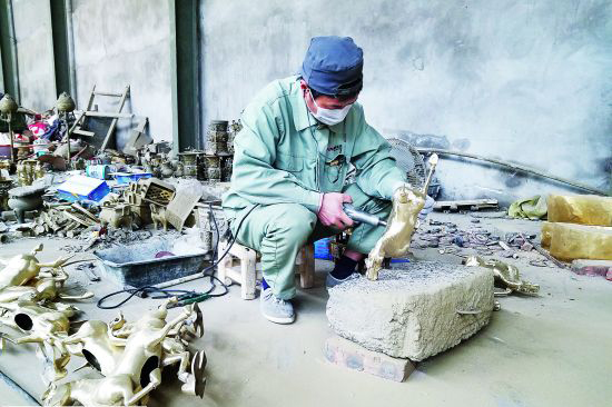 據(jù)了解,煙澗村村民最早從20世紀(jì)60年代就開始研究仿古青銅器制作技術(shù)了,到了90年代末期,該村的青銅器制作逐漸形成了產(chǎn)業(yè)。“從石蠟銷售到廢銅回收,再到模具的供應(yīng),村里都有專門的人在做。”馬柏成說。