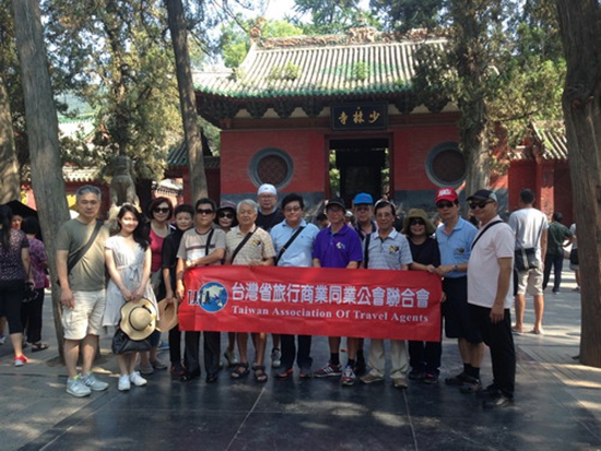 7月29日,為進(jìn)一步開(kāi)發(fā)臺(tái)灣入境旅游市場(chǎng),在臺(tái)灣旅行商業(yè)同業(yè)公會(huì)聯(lián)合會(huì)張東周理事長(zhǎng)的帶領(lǐng)下,該公會(huì)以及各縣(市)旅行公會(huì)理事長(zhǎng)及理(監(jiān))事一行20人來(lái)到登封,對(duì)少林寺、塔林及少林武術(shù)表演進(jìn)行考察,考察期間,旅行商對(duì)少林武術(shù)修學(xué)旅游產(chǎn)品產(chǎn)生濃厚興趣。