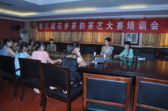 為花博會集聚人氣,豐富花博會期間旅游活動,弘揚(yáng)鄢陵悠久的茶文化、水文化和鄢陵宜居的健康宜居環(huán)境。縣旅游局積極籌備,將在今年花博會前舉辦主題為“花鄉(xiāng)茶韻•健康養(yǎng)生”的第三屆花鄉(xiāng)茶韻茶藝大賽。為了搞好此項(xiàng)大賽,縣旅游局對比賽場地、比賽流程、參賽選手及參賽節(jié)目都做了精心策劃和篩選。8月12日,我們聘請了河南省茶文化研究會專業(yè)老師對本次大賽的參賽選手進(jìn)行了賽前培訓(xùn),茶藝?yán)蠋煆牟栉幕A(chǔ)知識、泡茶技藝、配樂、創(chuàng)意和茶葉、服裝、形象、茶具組合等方面對參賽選手進(jìn)行了全方面授課,以求每個參賽項(xiàng)目都達(dá)到既有較強(qiáng)的可看性,又有較高的藝術(shù)水準(zhǔn)。并通過比賽的舉辦,達(dá)到對宣傳和樹立我縣生態(tài)宜居、健康養(yǎng)生的美好形象,吸引更多游客來此休閑度假、觀光旅游,進(jìn)一步促進(jìn)我縣旅游業(yè)的發(fā)展。
