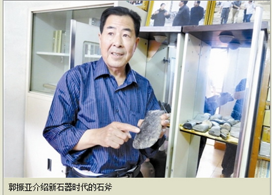在郭振亞家里的一個(gè)木柜子里,存放了近百件與二里頭文化相關(guān)的石器、陶器、骨器等殘品,其中既包括新石器時(shí)代的石鏟、石斧,還有陶杯、陶盉(hé)的殘把,骨鑿、骨鏃、骨簪等。