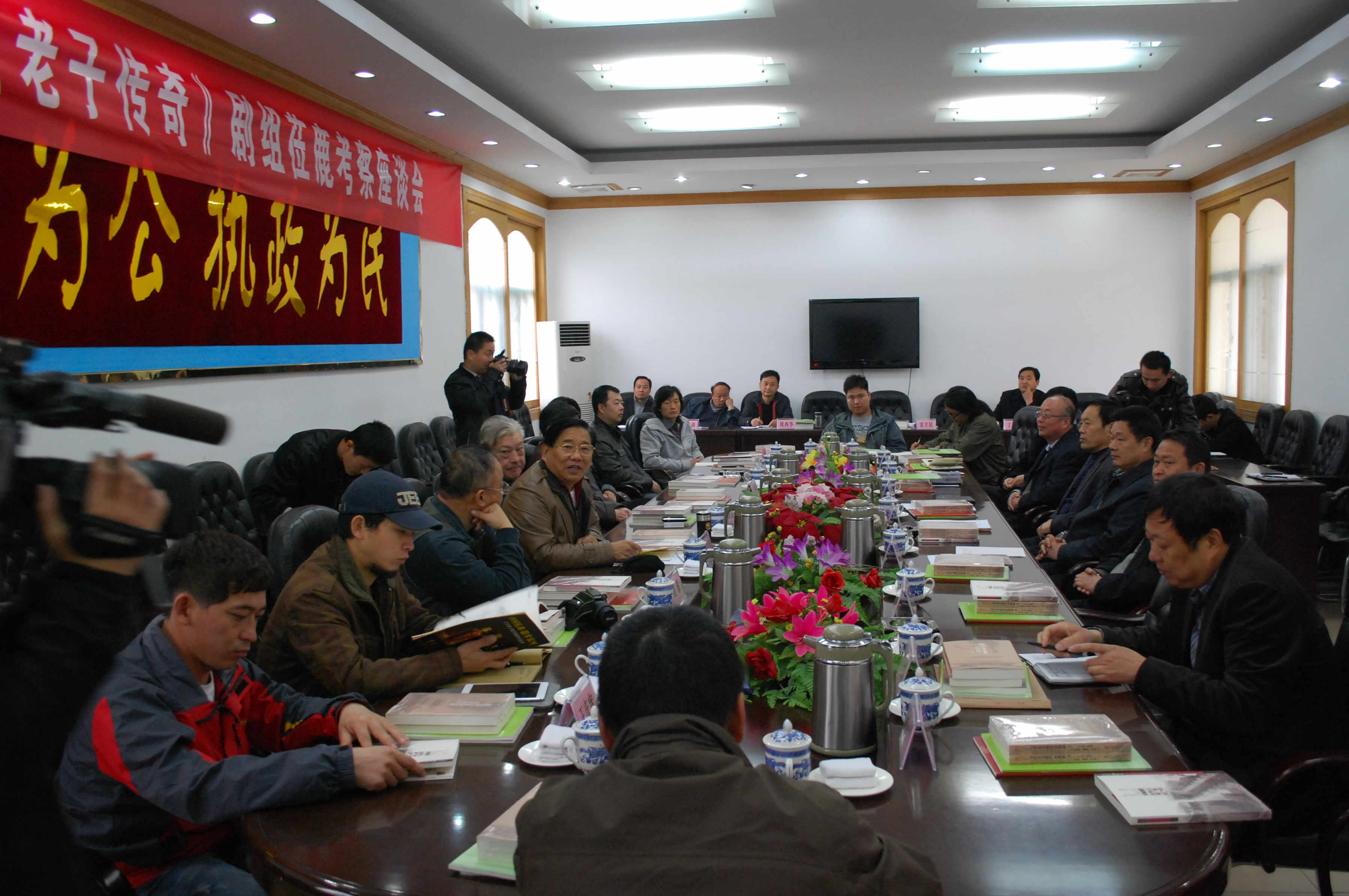 近日,電視連續(xù)劇《老子傳奇》劇組主創(chuàng)人員一行10余人蒞臨老子故里鹿邑縣考察,鹿邑縣組織召開了由劇組主創(chuàng)人員和當(dāng)?shù)叵嚓P(guān)人士參加的座談會。劇組人員中有總導(dǎo)演陳家林、導(dǎo)演陳衛(wèi)國、藝術(shù)總監(jiān)畢啟亮、編劇王學(xué)新等。鹿邑縣人大黨組書記夏學(xué)良、副縣長李幫儒、縣委辦公室副主任兼旅游局長丁震、文化局局長張險峰、老子文化研發(fā)中心主任陳大明、輔仁集團(tuán)副總裁楊忠然、旅游局副局長兼老子故里旅游景區(qū)管理處主任張偉、太清宮鎮(zhèn)政府鎮(zhèn)長劉梅及縣政協(xié)、縣國土資源局等單位人員出席座談會,鹿邑民間作家周西華、趙先鋒、劉升元等老子文化、老學(xué)研究的相關(guān)人士也參加座談。