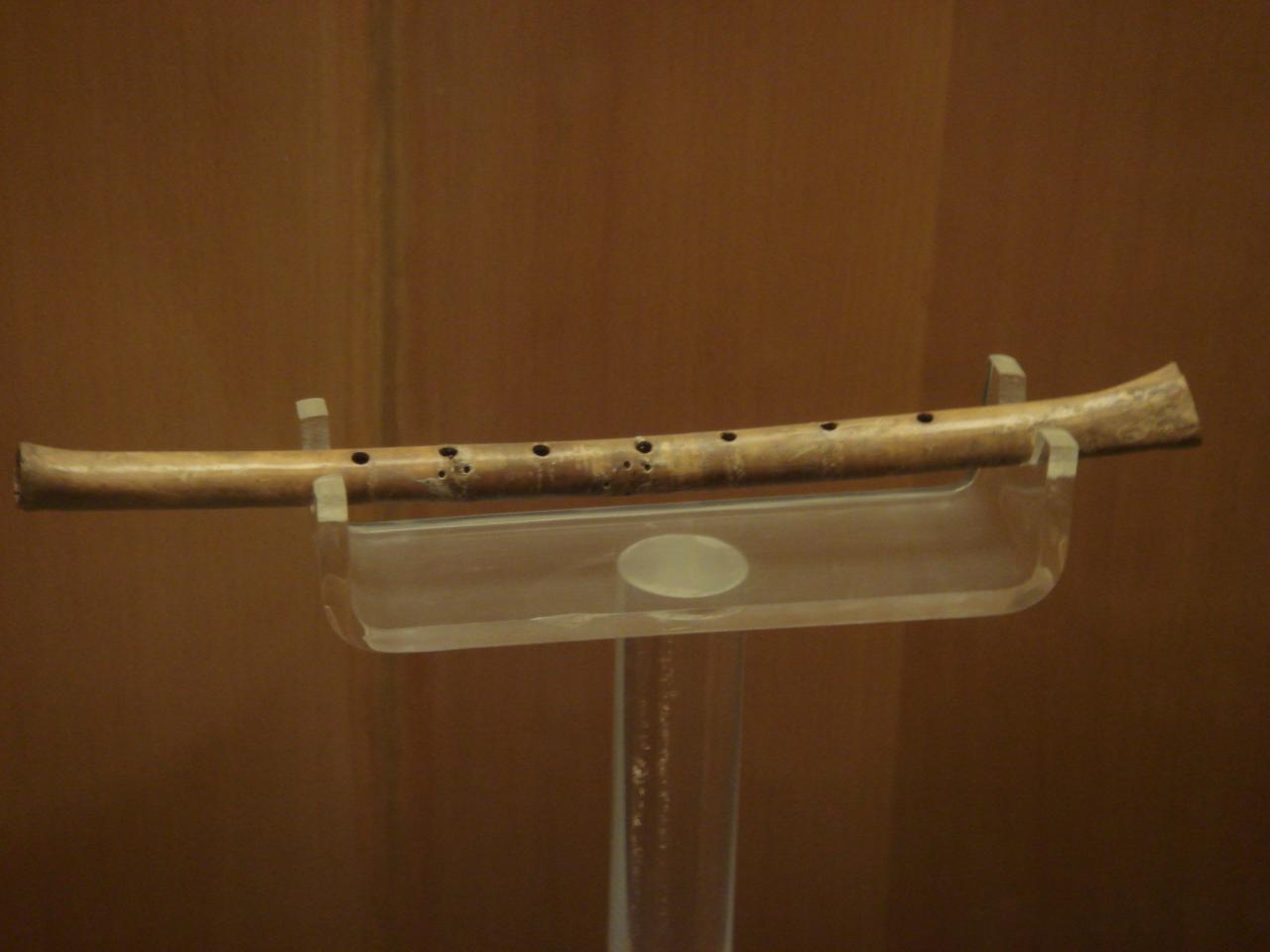 在河南博物院一樓展廳展出的賈湖骨笛,全長22.2厘米,共有七孔,磨制精細(xì),保存完好。在靠近第7孔的地方又穿有校音的一個(gè)小圓孔。這說明當(dāng)時(shí)制作骨笛前已經(jīng)過精確的計(jì)算,制成后還用加小孔的方法調(diào)整音差,可見古人對(duì)樂理的了解已達(dá)到相當(dāng)?shù)母叨。但先民們依?jù)什么音律標(biāo)準(zhǔn)、運(yùn)用什么方式計(jì)算和設(shè)計(jì),至今仍是個(gè)難解之謎。