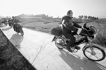 一大早,包久剛皮影團(tuán)的演員就騎著摩托車出發(fā)了。