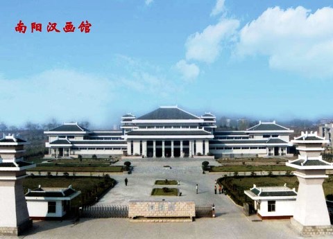 1956 年建成的南陽漢畫館位于南陽市西臥龍崗武候祠旁。該館收藏畫像石刻1300 余塊,并把發(fā)掘的典型漢畫像石墓遷至館內(nèi)復(fù)原陳列,成為我國收藏漢畫數(shù)量最多的 博物館。南陽漢畫像石布局疏朗,線條粗獷,一幅一個主體,采用淺浮雕加施陰線的 技法,注意畫面的磅礴氣勢,無論人物和動物追求動態(tài)感,著重形神的表現(xiàn),給人粗 獷、古樸升騰之感,在我國美術(shù)史上占有重要地位。